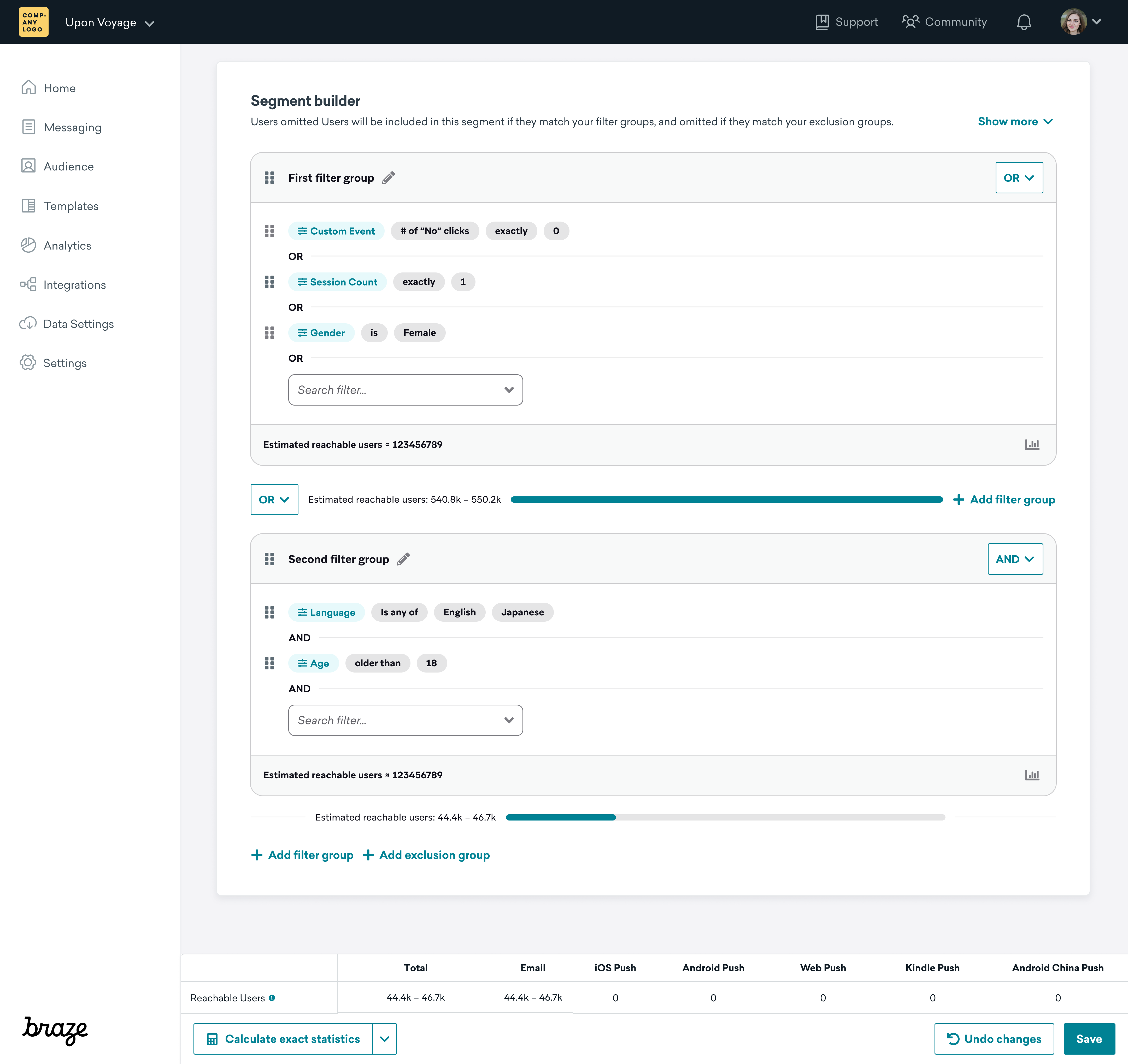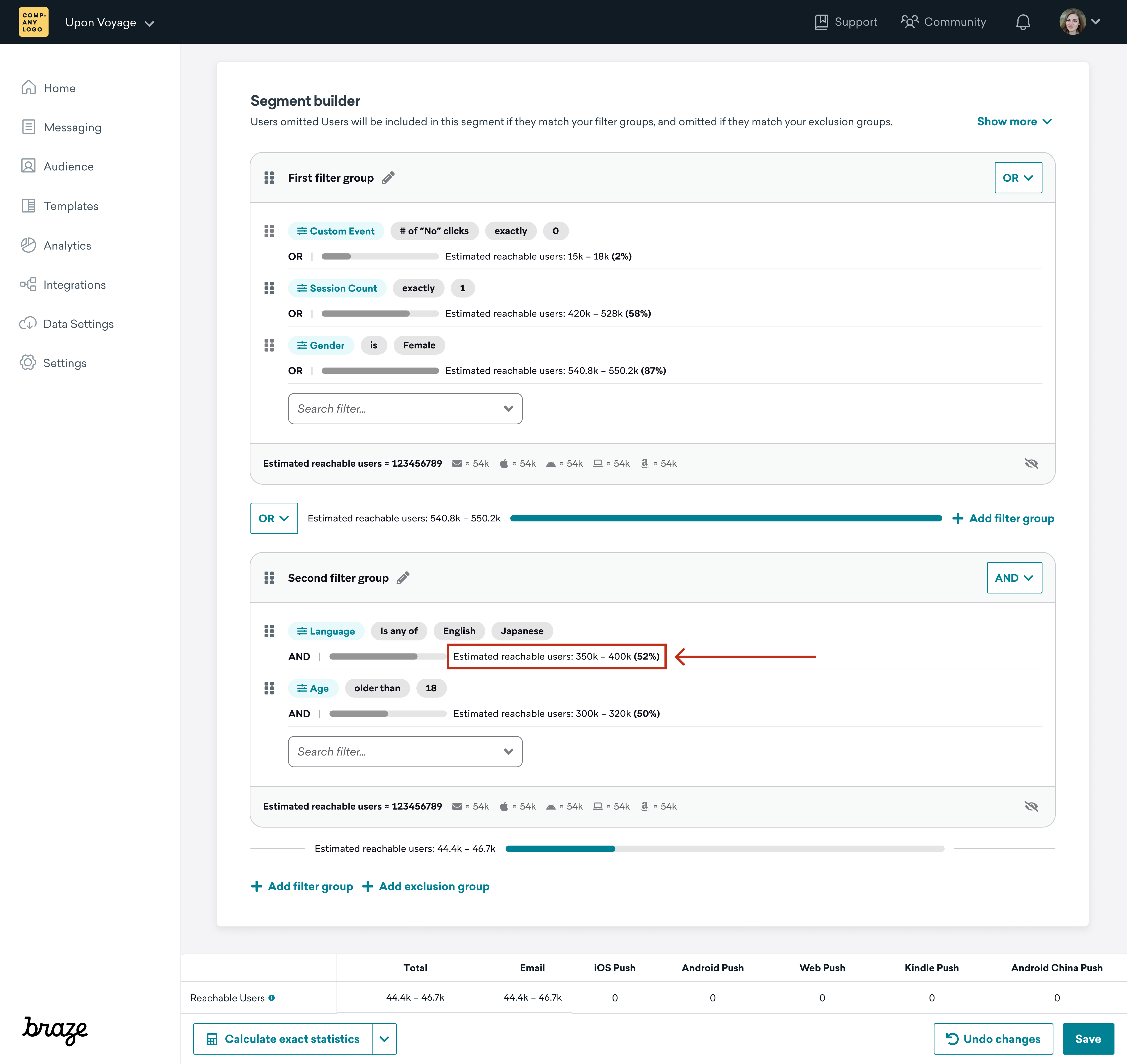 Hi everyone! I'm Nancy, the designer at Braze working on our segmentation tools. We've received feedback about wanting to see funnel stats in our updated segment builder design to easily track reachable user increases and decreases. As I work on this design, I'd love to get your feedback, and I have three questions that will help inform our design decisions.