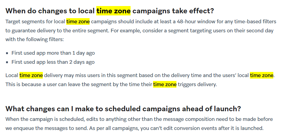 I am looking to set up a campaign that be run manually daily day at around 8am-10am (depending on internal readiness). We want this campaign to be received in users local time zone at the same time. Eg. Campaign run at 8am Melbourne time and received in New York at 8am (14hours later)